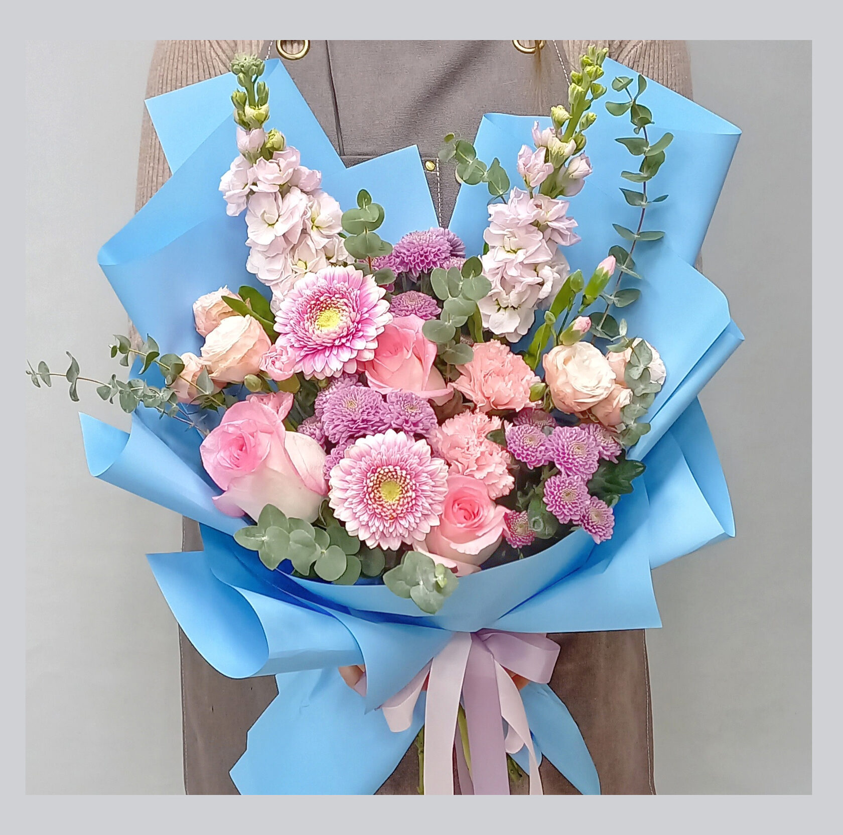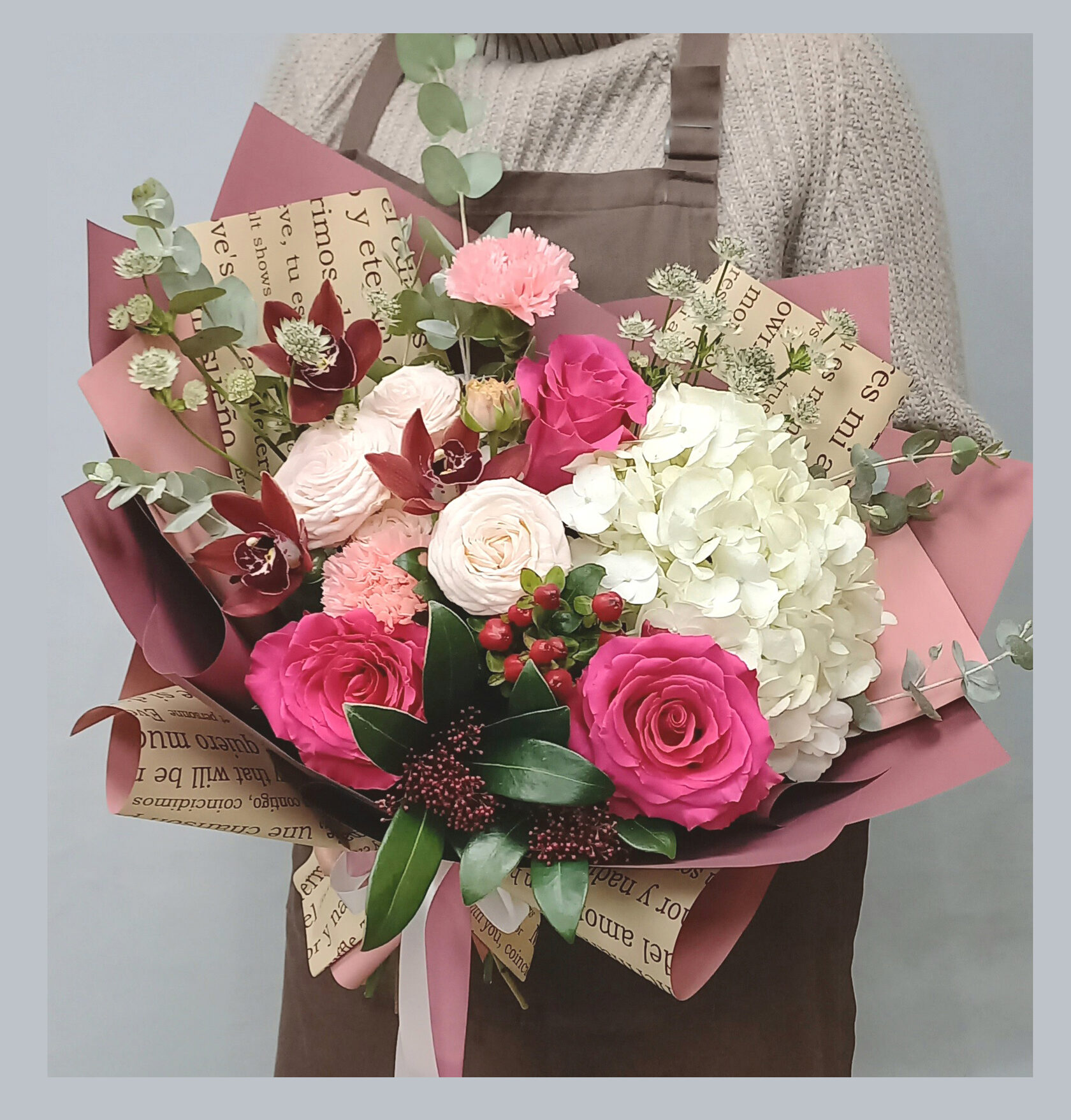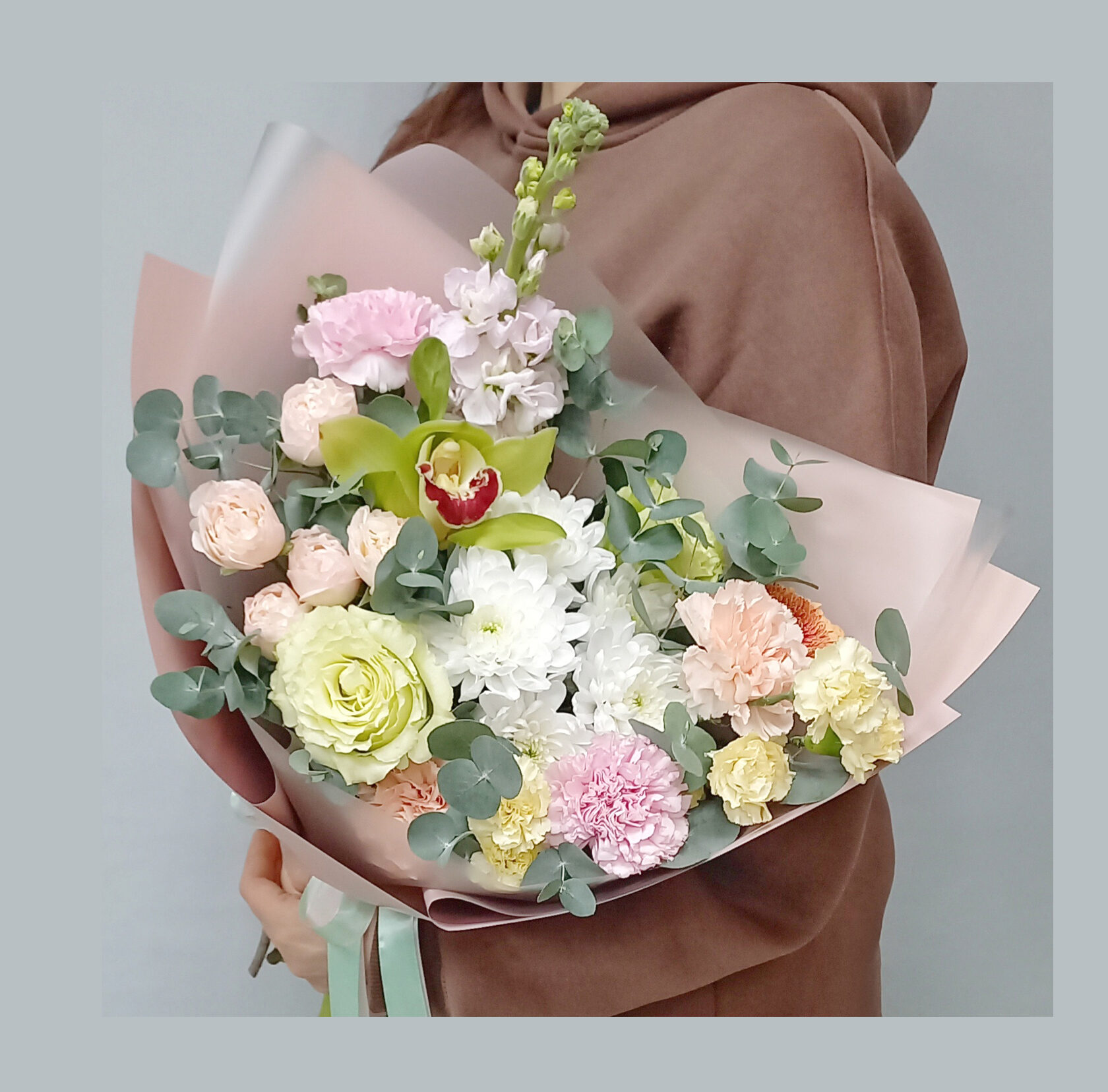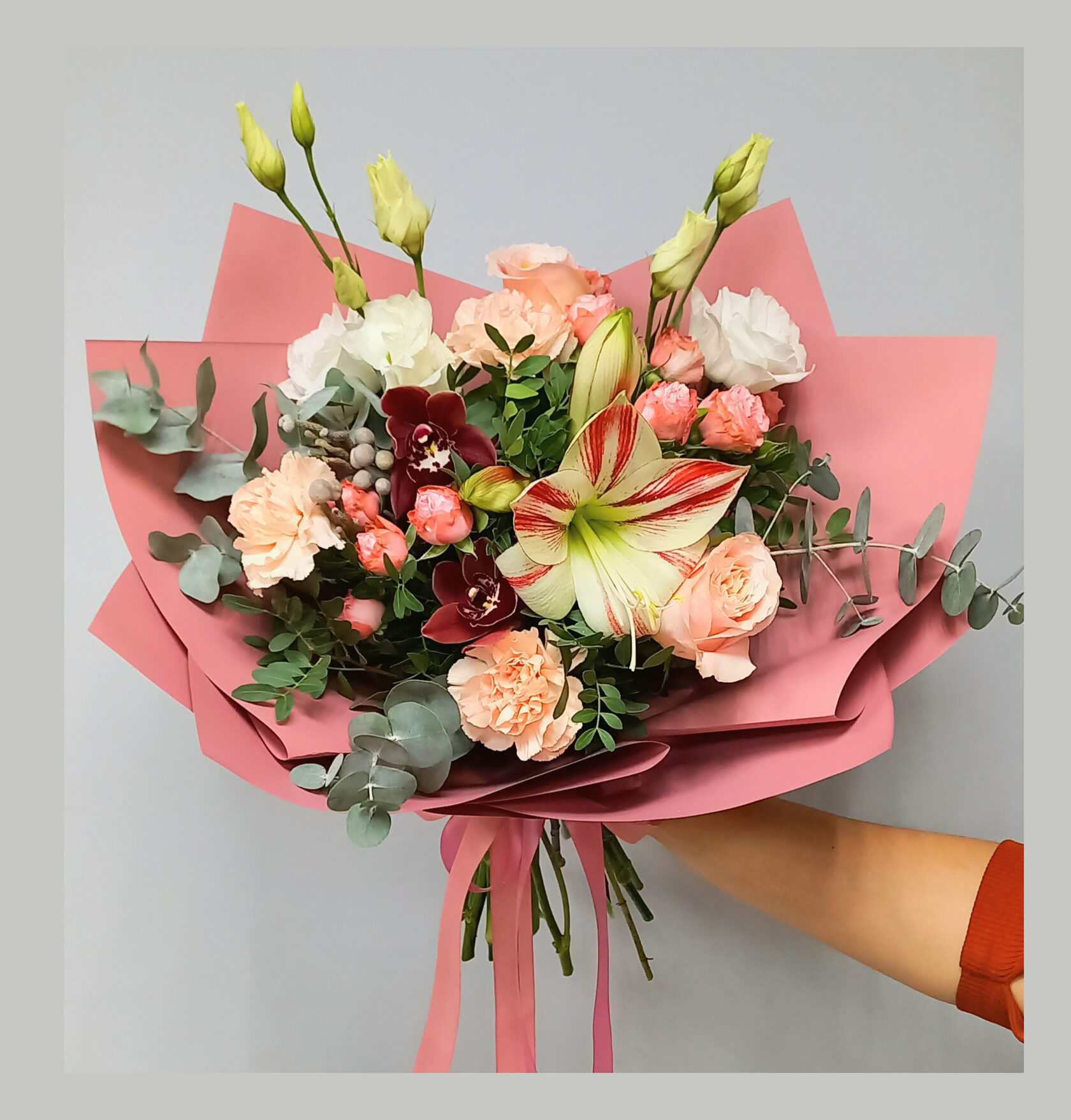 Для комфортной совместной работы, вы можете озвучить сумму вашего бюджета и ваши предпочтения, а наши флористы соберут прекрасный букет специально для вас.