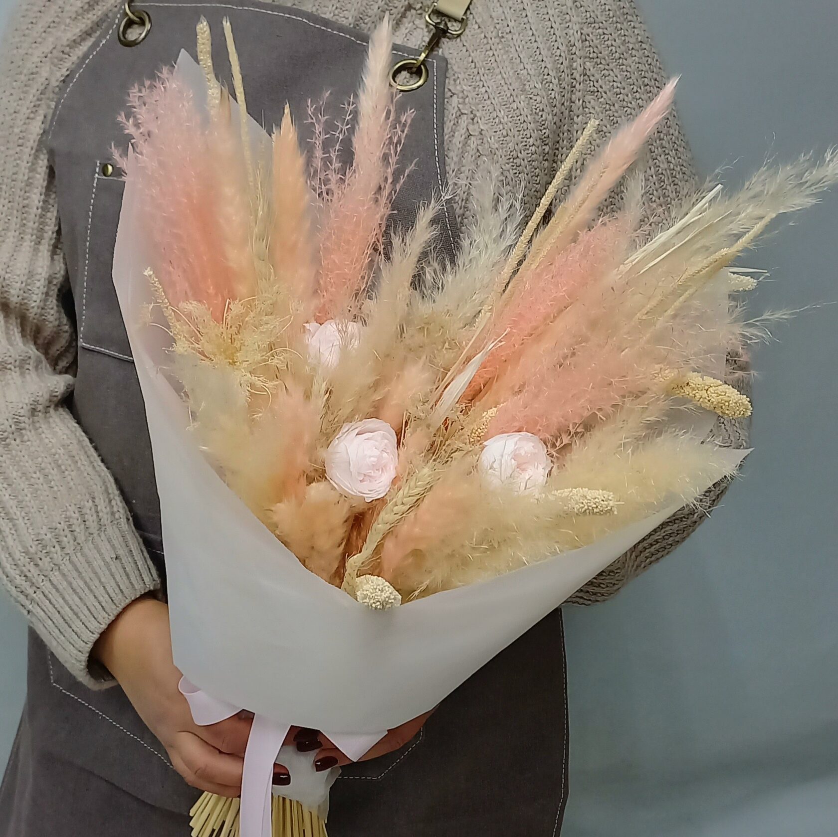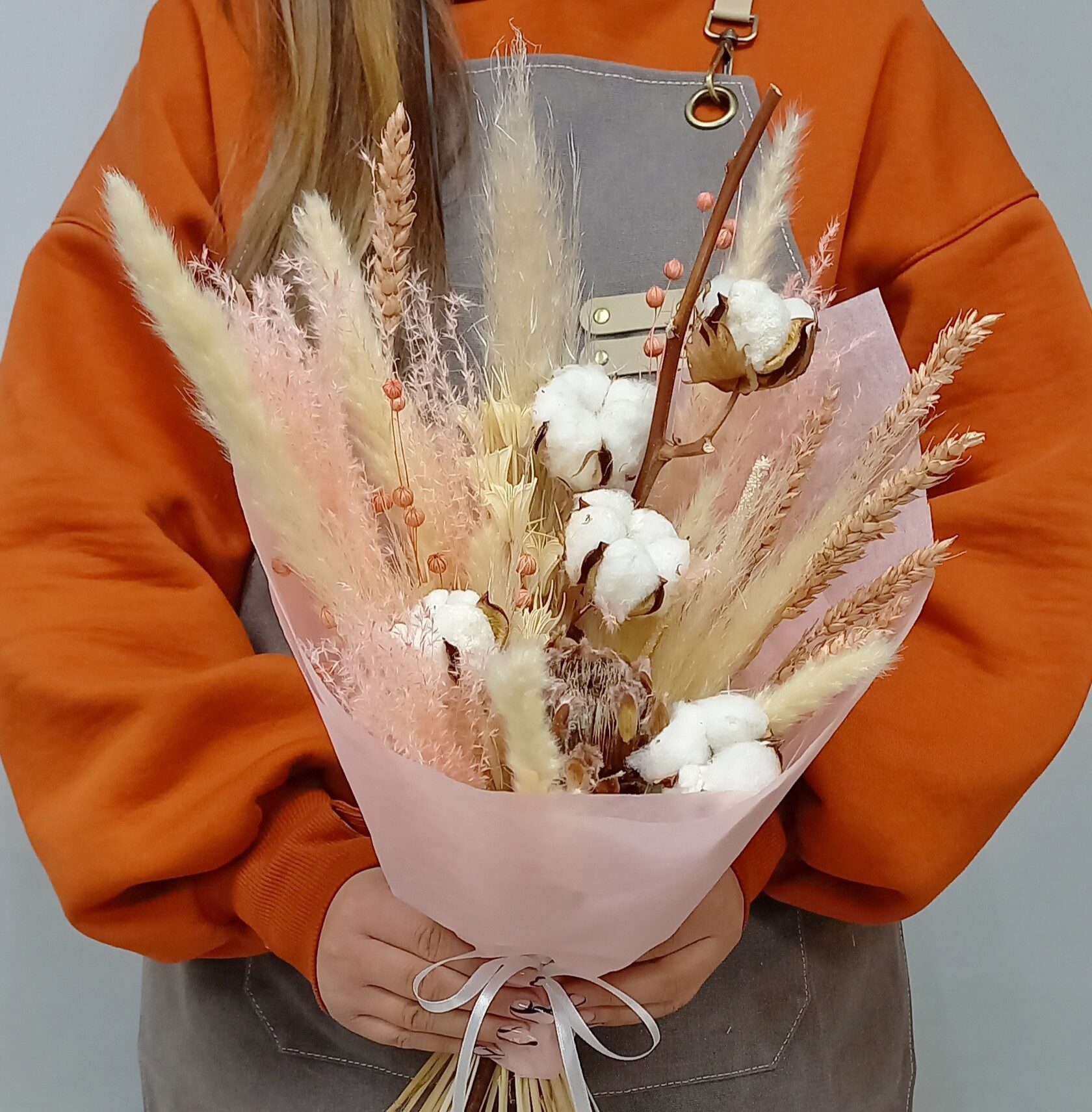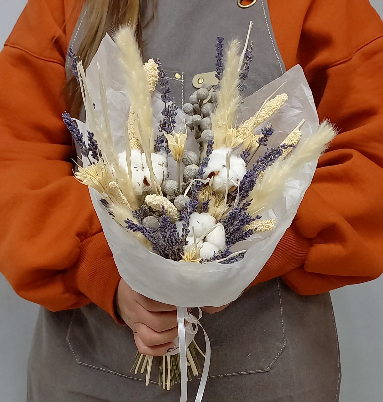 Букет из сухоцветов - необычный и запоминающийся подарок, который будет радовать получателя долгое время. Наши флористы создадут для каждого случая уникальную композицию.